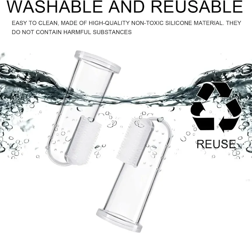 Super Soft Pet Finger Toothbrush – Professional Dental Care for Dogs and Cats Maintain your pet's oral health with this innovative finger toothbrush, engineered for gentle yet effective cleaning. Crafted from food-grade silicone, this transparent brush features ultra-soft bristles (0.4cm) designed to reach sensitive areas without causing discomfort. The ergonomic design fits snugly over your finger, giving you complete control while brushing your pet's teeth and gums. This universal solution tackles common dental issues including bad breath, tartar buildup, and plaque accumulation. The compact size (5.4cm length, 1.7cm inner diameter) makes it ideal for pets of all breeds and sizes, from small cats to large dogs. Safe for both pets and babies, the food-grade silicone material ensures no harmful chemicals come into contact with your animal's mouth. Each purchase includes your choice of 1, 3, 5, 10, or 20 pieces, making it perfect for establishing a consistent dental care routine or sharing with fellow pet owners. Packaged conveniently at 7×4×2.5cm, these brushes are easy to store and travel-friendly. Invest in preventative pet dentistry today and enjoy fresher breath and healthier teeth for your beloved companions.